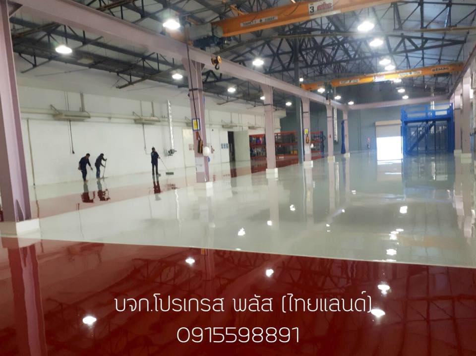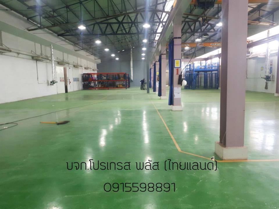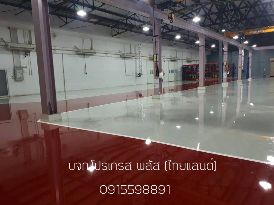 งานเคลือบพื้นด้วยอีพ็อกซี่เหมาะสำหรับ โรงงานอุตสาหกรรมต่างๆ เพื่อทนการกระแทกจากของหนัก ทนรอยขีดข่วนพื้นผิวเงาสวยงามรักษาทำความสะอาดได้ง่าย